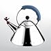 The 9093 Bird Kettle was designed by Michael Graves for Alessi in 1985. Made of 18/10 mirror-polished stainless steel with magnetic stainless steel heat diffusing bottom. Select Blue, White/Ivory or Black handle and small bird-shaped whistle.